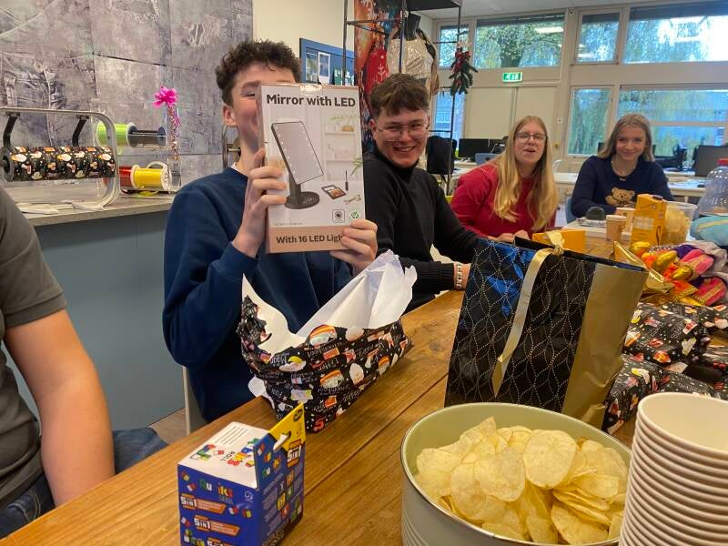klas 3 Lekker gedobbeld. Populaire cadeautjes waren de VR bril, de voetbal en de veters met lampjes!